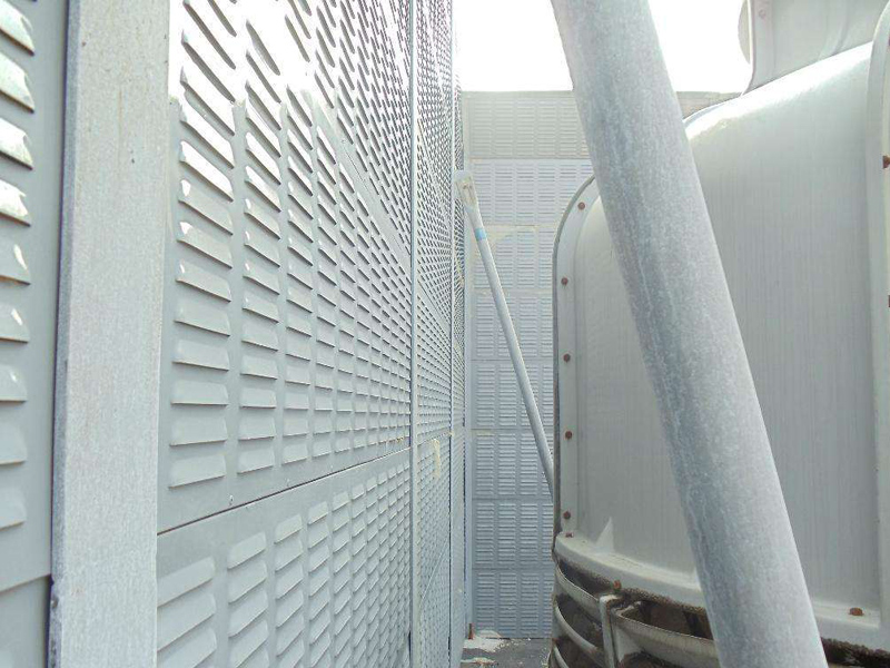 冷卻塔聲屏障聲屏障采用混合型聲屏障,頂部為吸聲單元,以下部分為隔聲單元。合理斷定聲屏障的長(zhǎng)度和高度后,可獲得10-25dB(A)的降噪量。